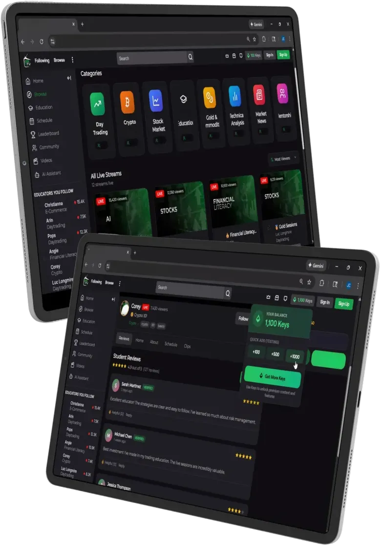 Master stocks, real estate, crypto, AI, ecommerce, fitness, culinary arts, and more through daily live streams with real-time mentorship—then turn that momentum into real skills, serious knowledge, and a legacy alongside the global 1House community.